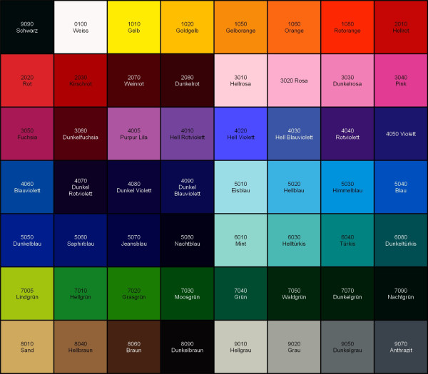 Diese Tabelle soll dazu dienen, dir ein Gefühl für die Farben zu geben.